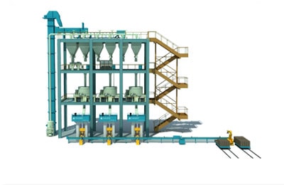 全自動爐渣生產線,可根據客 戶需求定制方案,實現自動布料、 自動成型、自動出磚,僅需一人碼垛即可。